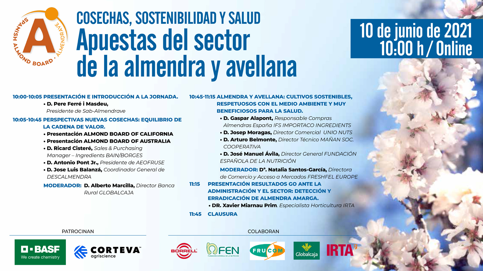 Tendrá lugar el próximo 10 de junio a partir de las 10h, en formato virtual y bajo el título "Cosechas, sostenibilidad y salud: apuestas del sector de la almendra y avellana".