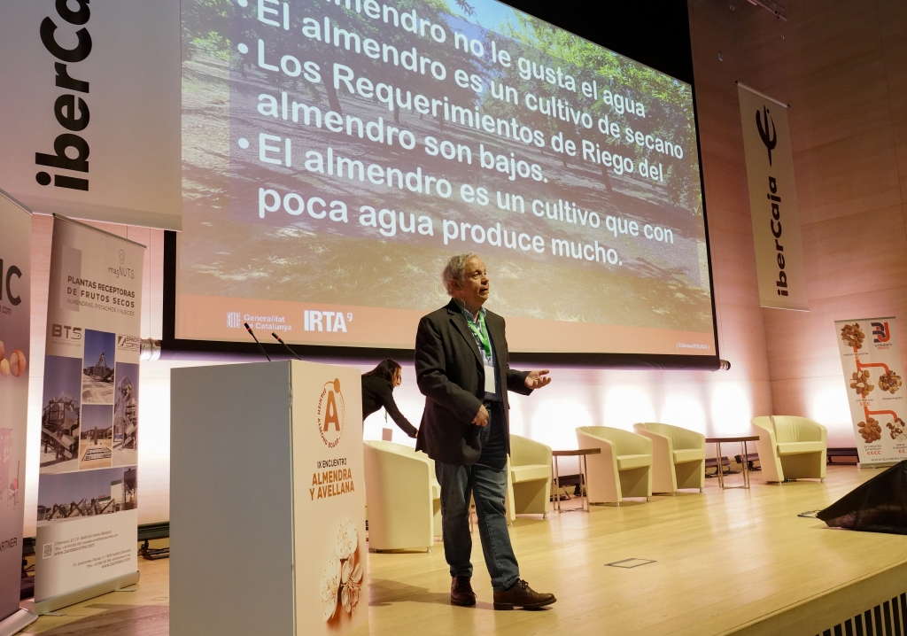 La sostenibilidad ha sido el principal tema sobre el que ha girado esta jornada. Así, Joan Girona, investigador senior del Programa “Uso Eficiente del Agua en Agricultura” del IRTA, ha destacado la importancia de ser muy eficiente en la gestión del agua en el cultivo del almendro: “El cultivo del almendro, como todos, requiere transpirar mucha agua para producir alimentos. De hecho, almendros con disponibilidades de agua muy por debajo de su demanda son altamente ineficientes. Es por ello por lo que las estrategias de riego deficitario deberían reducir las pérdidas adicionales de producción frente a la función de referencia. En ese sentido, el manejo de riego debe basarse en indicadores fiables. Es ahí donde la tecnología juega un papel clave”, ha destacado.