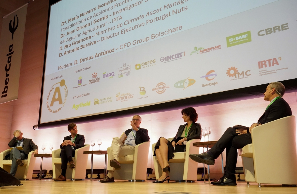 En una posterior mesa redonda sobre sostenibilidad, moderada por el CFO del Grupo Bolschare, Dimas Antúnez, la subdirectora general de Coordinación de Acciones frente al Cambio Climático del MITECO, María Navarro, ha afirmado que el sector de la almendra tiene una gran oportunidad con respecto al cumplimiento de los objetivos de sostenibilidad, tanto por lo que respecta a la conservación de la biodiversidad y el uso eficiente del agua como en lo referente a la captura de carbono y su certificación: “Antes se pensaba que la agricultura servía únicamente para producir alimentos. Ahora, está demostrado que la agricultura ejerce como sumidero de carbono e identificar la agricultura como un sumidero natural es una oportunidad importantísima para el sector, concretamente, para los cultivos leñosos. Ahora bien, que la agricultura se incorpore al comercio de emisiones de carbono será una iniciativa compleja”. Por su parte, Antonio Saraiva, director ejecutivo de Portugal NUTS, ha destacado que, de las 19.000 hectáreas de cultivo de almendro en Portugal, el 68% está en producción integrada. “El 97% del área de almendro tiene cubiertas vegetales. Muchos productores hacen unos de abejas para la polinización, no solo en variedades americanas, también en variedades ibéricas”, ha incidido. Bru Gramona, miembro del Climate Asset Management, ha afirmado que “el secuestro de carbono, la biodiversidad, el agua… tienen un impacto en la cuenta de resultados, y es algo que influye en el retorno de las inversiones. En particular, ejecutamos prácticas que inciden en la optimización del recurso del agua, no solo tecnología, también recursos como las cubiertas vegetales. Otras palancas son la reducción de pesticidas, la biodiversidad… Nosotros nos apoyamos en los créditos de carbono como un ingreso adicional. También somos defensores de la agricultura regenerativa y del cultivo en orgánico”, ha enumerado. Por último, Joan Girona ha recordado que es necesario hacer mucha más pedagogía y comunicación de cara a la sociedad, para tratar de cambiar la imagen negativa que parte de la ciudadanía tiene en torno al consumo de agua en la agricultura: “En nuestro sector, el agroalimentario, nos hemos dedicado a producir y hemos comunicado poco. Quienes han ganado la batalla de la comunicación han sido otros postulados, y el poso se ha quedado. Tenemos por delante una gran labor que hacer, para convencer a la sociedad de que utilizamos el agua para producir alimentos necesarios”.