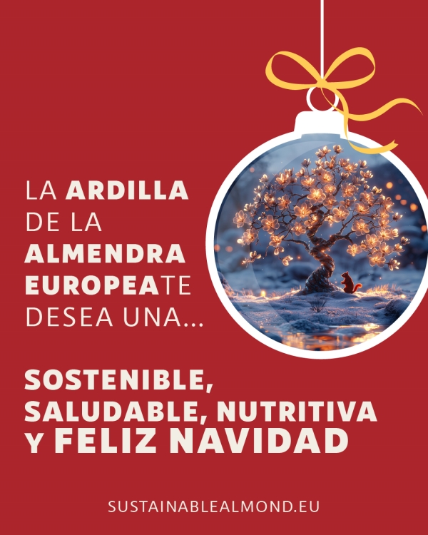 De igual modo, te deseamos un 2025 cargado de buenas noticias a través de la ardilla protagonista de la Campaña de Promoción de la Almendra Europea.